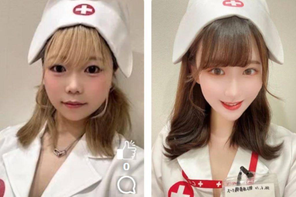 お迎えしてくれるのは、セクシーなマイクロミニナースの衣装を身につけた、キャストたちです。