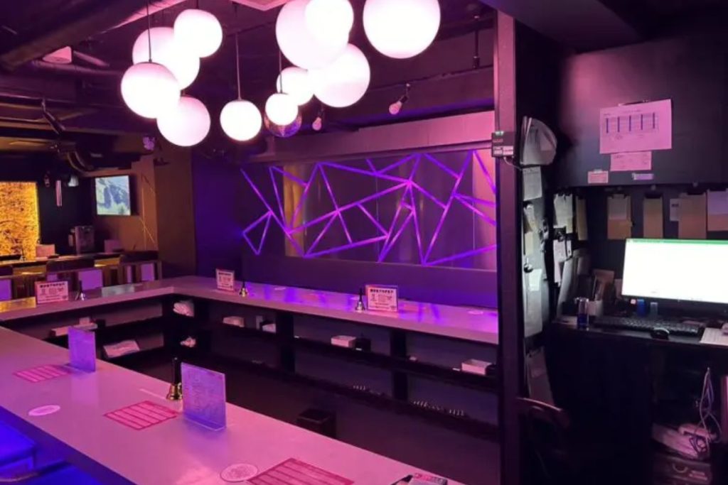 店内は幻想的なブルーライトに照らされており、一歩足を踏み入れるだけで日常のストレスを忘れさせる非日常的な雰囲気を感じさせます。